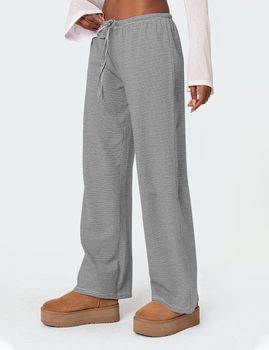Hesayep מפעל הסיטונאי רגל רחב פסים עבור נשים מזדמנים שרוך מזדמנים אלסטי עלייה נמוכה מכנסי פיג 'מה ללבוש מכנסיים